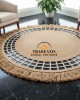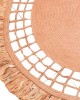 Handwoven Jute Round Rug – Beige with Geometric Cutout And Fringes
