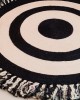 Handwoven Jute Round Rug – Black And White Stripes with Fringes